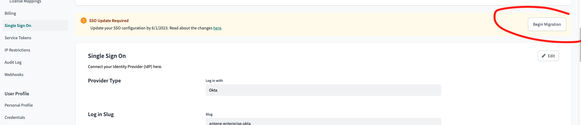 Once you have opted to begin the migration process, the following steps will vary depending on the configured identity provider. You can just skip to the section that's right for your environment. These steps only apply to customers going through the migration; new setups will use the existing setup instructions.